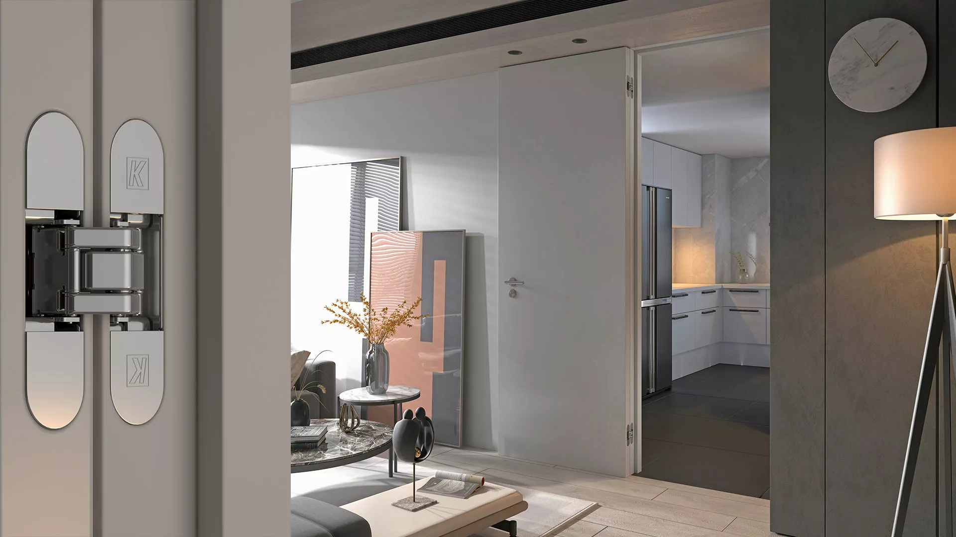 C’est exactement ce que permettent les charnières invisibles. Associées à une porte affleurante, elles offrent un effet « mur lisse » très recherché dans les conceptions modernes.