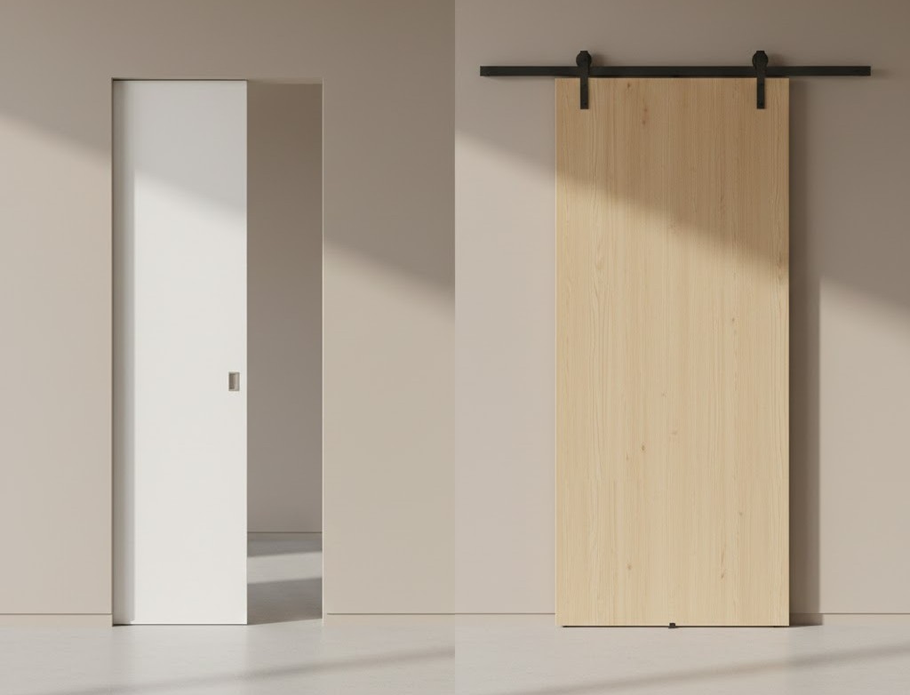 Porte coulissante : faut-il choisir un galandage ou une applique ? (Guide complet)